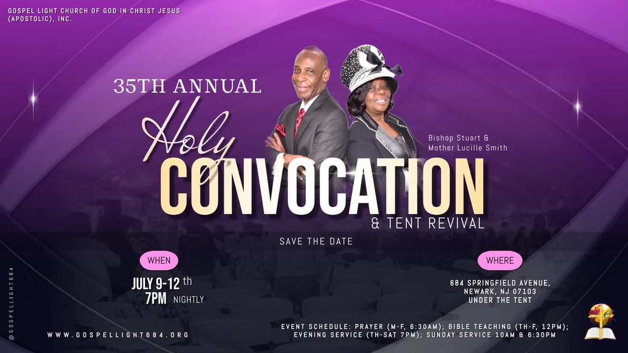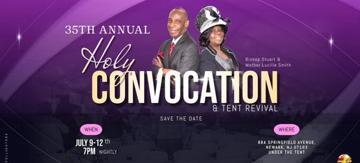Join us for our 35th Annual Holy Convocation, July 9-12th, under the tent! Bring a friend! See you there!